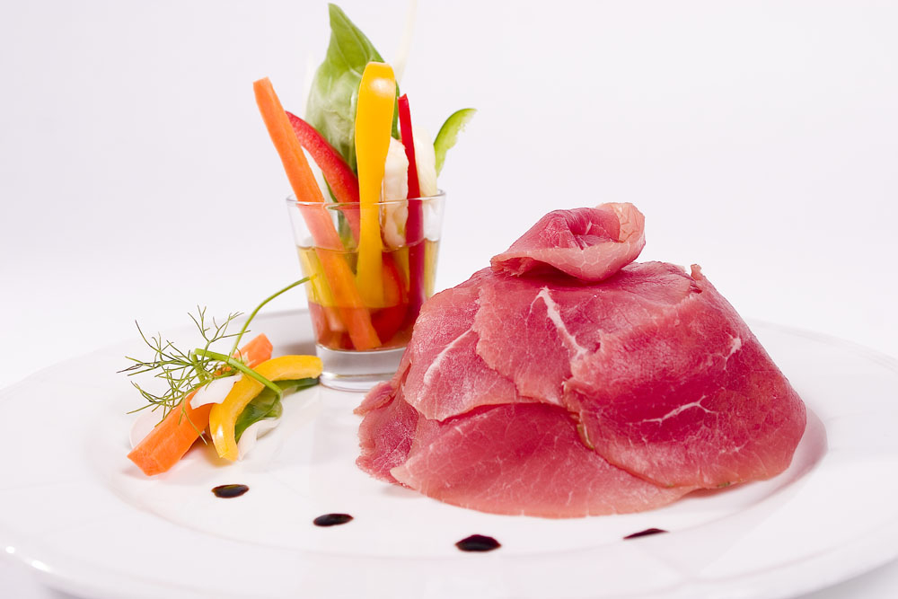 RICETTA CONSIGLIATA: Carpaccio di manzo affumicato con piccolo pinzimonio di verdure fresche.